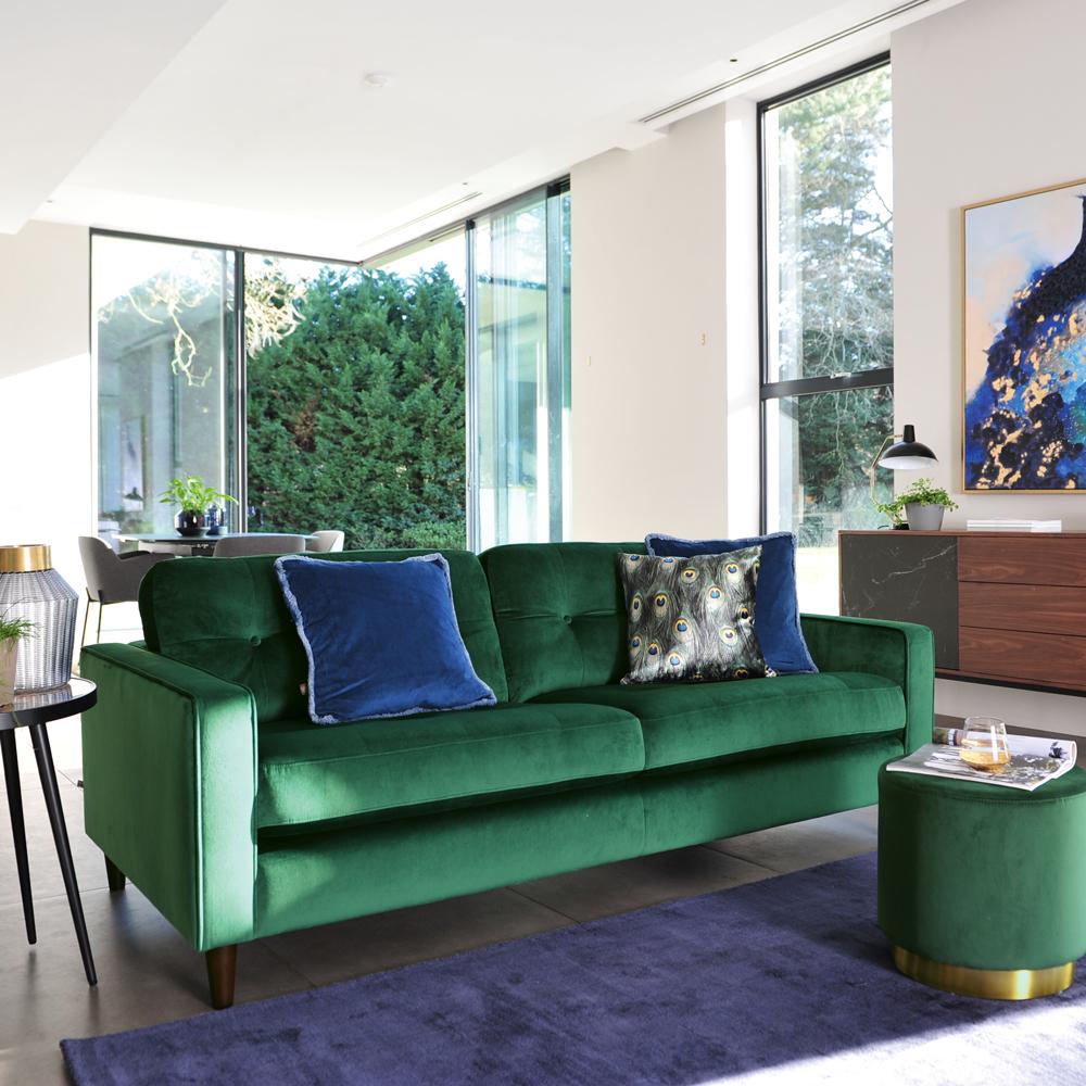 Addison Sofa Bed Right Facing Chaise In Green Velvet The Great Furniture Trading Company Featuring a tufted bench seat, plush cushions, and two matching bolsters, this green velvet sofa puts your calm, cool, creative style on display.